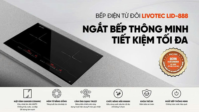 BẾP ĐIỆN TỪ ĐÔI LIVOTEC LID-888 – NGẮT BẾP THÔNG MINH, NẤU NHANH TIẾT KIỆM