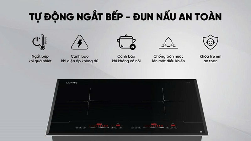 Livotec LID-888 được trang bị hệ thống ngắt tự động giúp bảo vệ an toàn tuyệt đối trong quá trình sử dụng. Dù là tràn nước, quá nhiệt hay điện áp bất thường, bếp đều có cơ chế phát hiện và xử lý kịp thời.