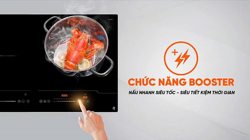 Chạm nhanh nút Booster để đẩy công suất lên mức tối đa trong thời gian ngắn. Phù hợp khi bạn cần nấu nhanh hoặc chế biến món ăn đặc trưng cần nhiệt cao tức thì.