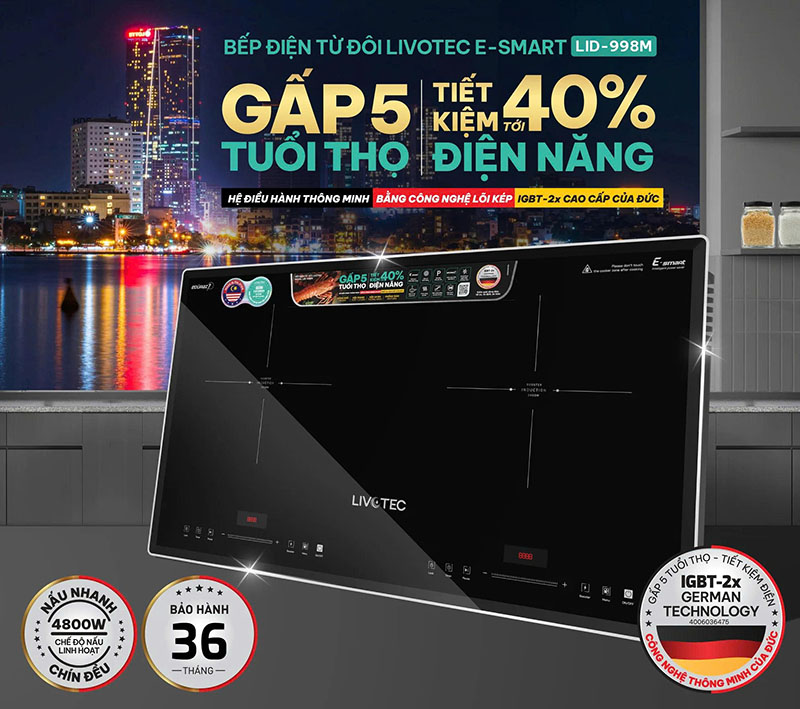 Bếp Từ Đôi Livotec E-smart LID-998M – Chuẩn Inverter Đức, Nấu Nhanh Gấp Đôi, Siêu Tiết Kiệm