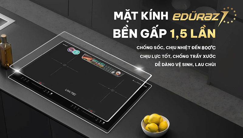 ♦ Mặt kính Eduraz – chịu nhiệt 800°C, chống trầy xước