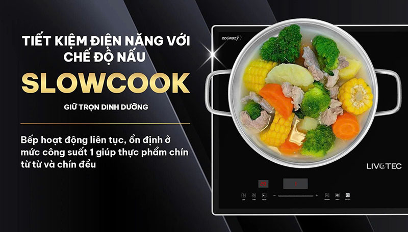 Chế độ nấu liu riu ổn định ở công suất thấp giúp ninh nhừ thực phẩm, giữ trọn hương vị và dinh dưỡng. Rất thích hợp cho các món hầm, kho.
