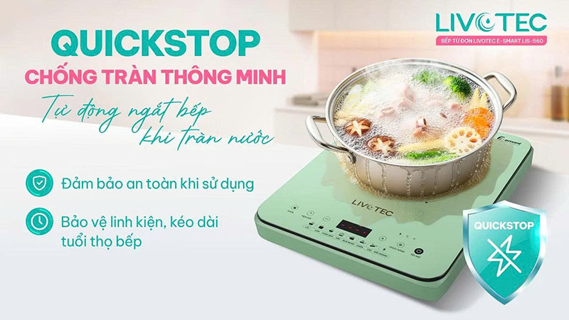 ♦ QuickStop chống tràn, tự động ngắt khi nước trào vào khu vực điều khiển