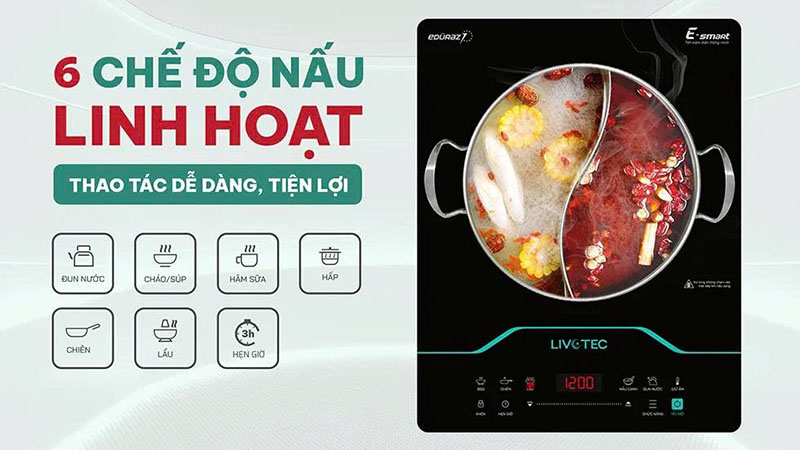 Bếp từ đơn Livotec E-smart LIS-626 là lựa chọn lý tưởng cho mọi gian bếp hiện đại, nổi bật với mâm từ 100% đồng nguyên chất, công suất mạnh mẽ 2200W cùng công nghệ IGBT tiên tiến. Không chỉ giúp nấu ăn nhanh gấp 2, bếp còn tiết kiệm điện năng lên tới 30% và có tuổi thọ vượt trội gấp 5 lần so với các dòng bếp thông thường.
