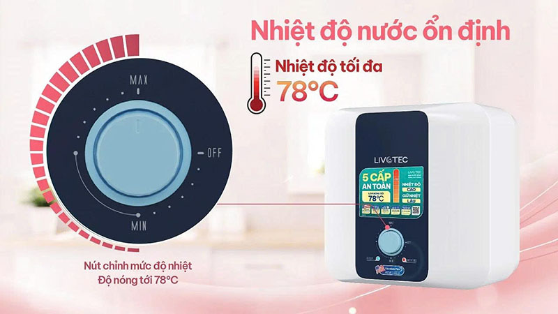 Nhiệt độ tối đa lên đến 78°C, phù hợp cho nhiều mục đích: