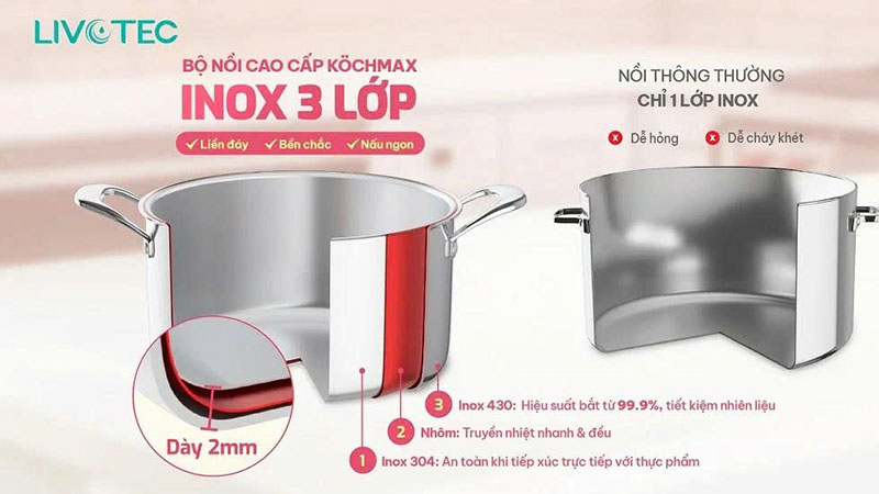 INOX 3 LỚP LIỀN ĐÁY DÀY GẤP 4 LẦN – BỀN BỈ VƯỢT TRỘI