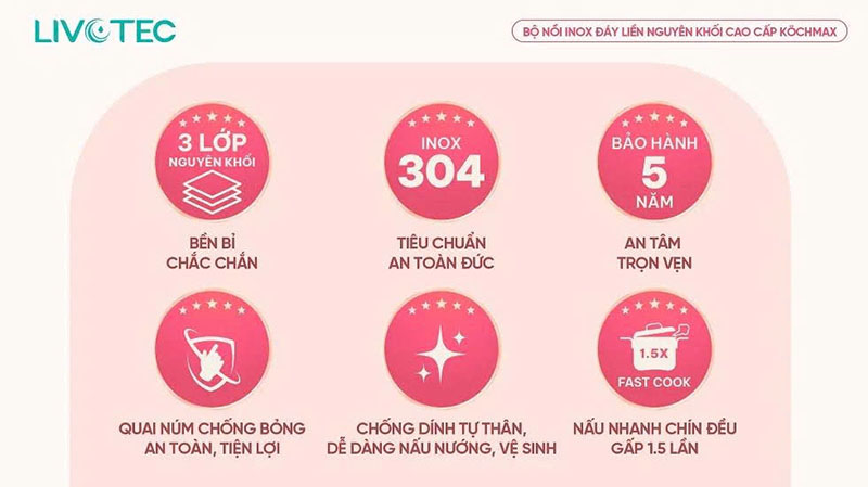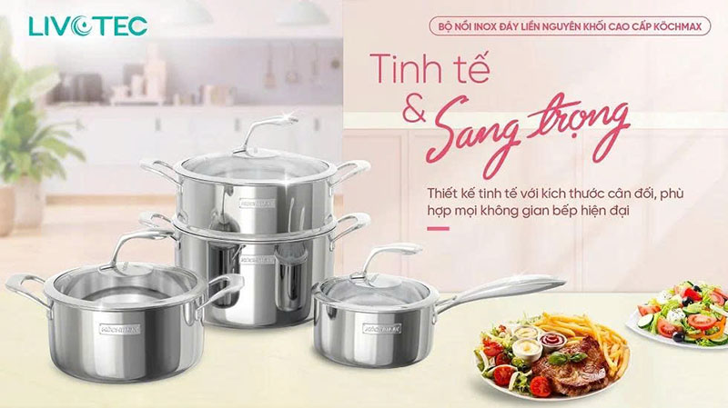 BỘ NỒI INOX CAO CẤP KOCHMAX KMC-866 – CHUẨN AN TOÀN ĐỨC, TRUYỀN NHIỆT NHANH 99.9%