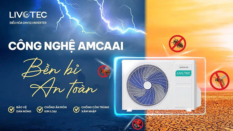 Công nghệ AMCAAI là giải pháp bảo vệ dàn nóng toàn diện trước các tác động môi trường như mưa nắng, độ ẩm cao và không khí mặn.