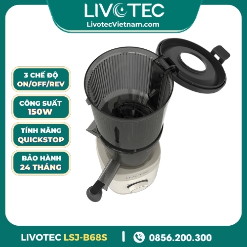 Máy ép chậm Livotec LSJ-B68S là lựa chọn lý tưởng cho lối sống khỏe mạnh hiện đại. Sở hữu công nghệ ép lạnh XFresh99, bộ lọc Inox 304 siêu mịn và trục ép răng cưa hiệu suất cao, LSJ-B68S giúp bạn dễ dàng tạo ra những ly nước ép nguyên chất 99% giàu vitamin, enzyme và dưỡng chất tự nhiên.