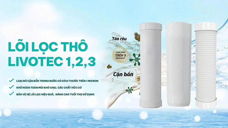 Hệ lõi này không chỉ làm sạch nước đầu vào mà còn giúp bảo vệ màng RO và các lõi sau, giảm tình trạng nghẹt, tắc, nâng cao hiệu suất lọc tổng thể.