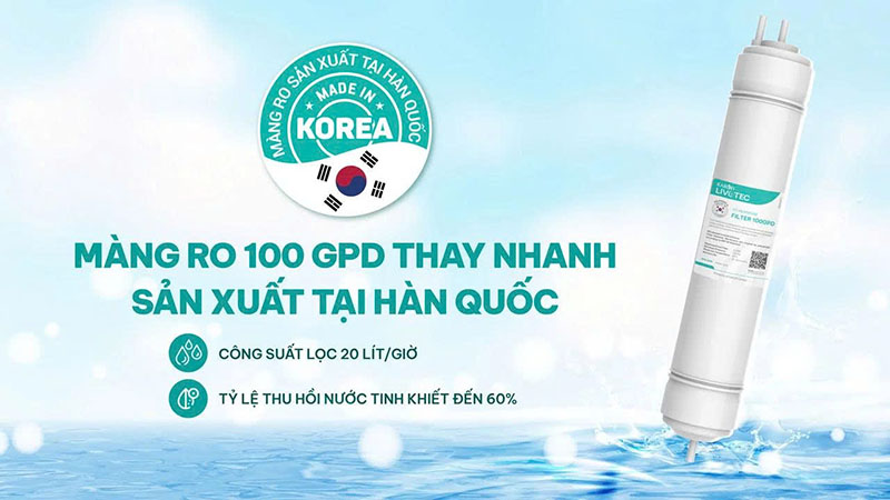 Màng lọc RO chuẩn Hàn Quốc nguyên khối, vô trùng, công suất cao