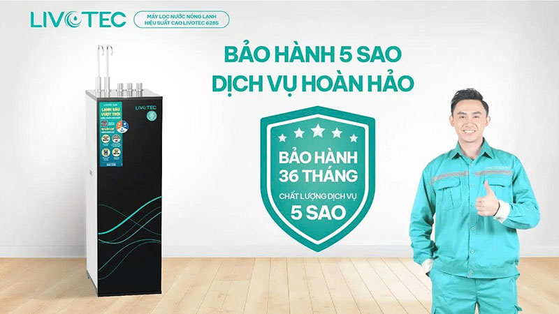 Máy lọc nước nóng lạnh Livotec 628S được bảo hành chính hãng 36 tháng, cùng dịch vụ hậu mãi chất lượng 5 sao, mang đến sự an tâm tuyệt đối trong suốt quá trình sử dụng.