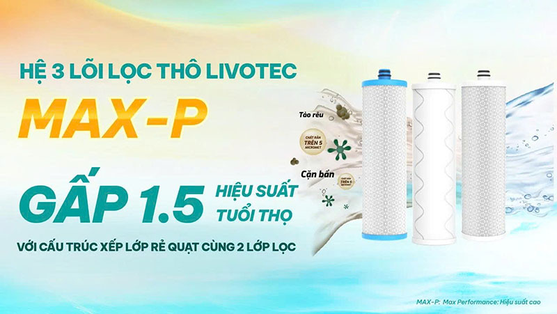 Livotec 636 được trang bị hệ lõi lọc thô Max-P 1, 2, 3 với thiết kế rẻ quạt nhiều lớp giúp: