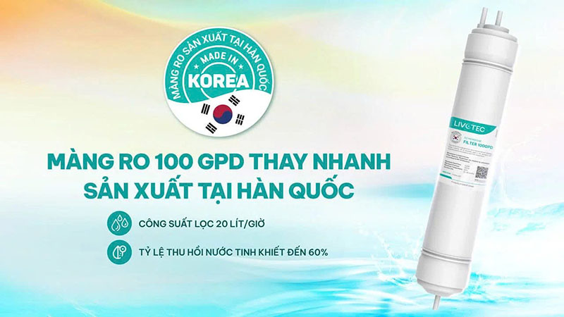 ♦ Màng RO 100 GPD Hàn Quốc – Loại bỏ 99,99% vi khuẩn, asen, amip