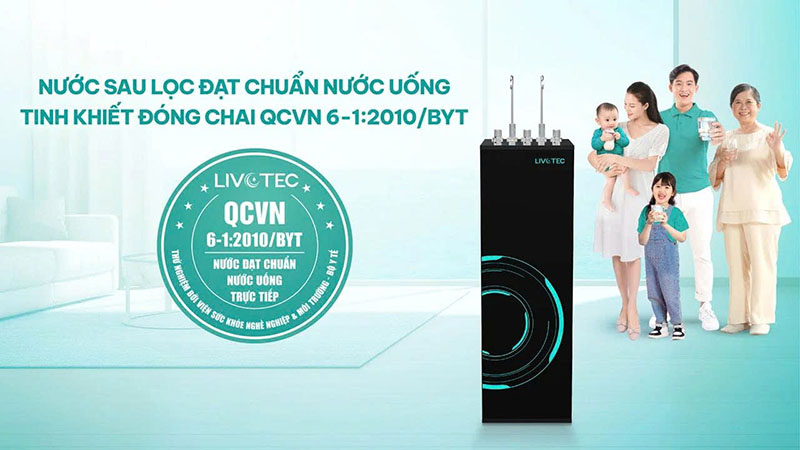 Nước sau lọc từ Livotec 636 đạt chuẩn nước uống tinh khiết đóng chai – có thể uống trực tiếp, phù hợp cho cả trẻ em và người cao tuổi.