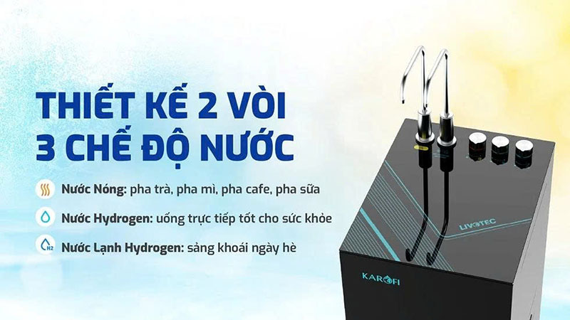 ♦ 2 vòi – 3 chế độ nước: nóng, nguội, lạnh Hydrogen tiện dụng