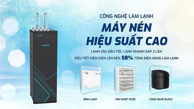 Máy nén hiệu suất cao cho khả năng làm lạnh cực nhanh, giữ nhiệt độ nước mát lý tưởng từ 10–12°C như trong tủ lạnh.