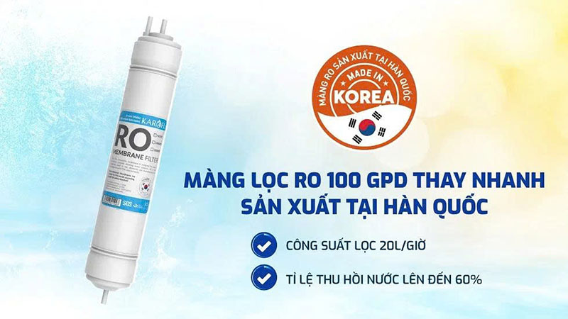 ♦ Màng RO lọc sạch vi khuẩn, amip, kim loại nặng, asen và các chất độc hại trong nước với hiệu suất lọc 20 lít/giờ.