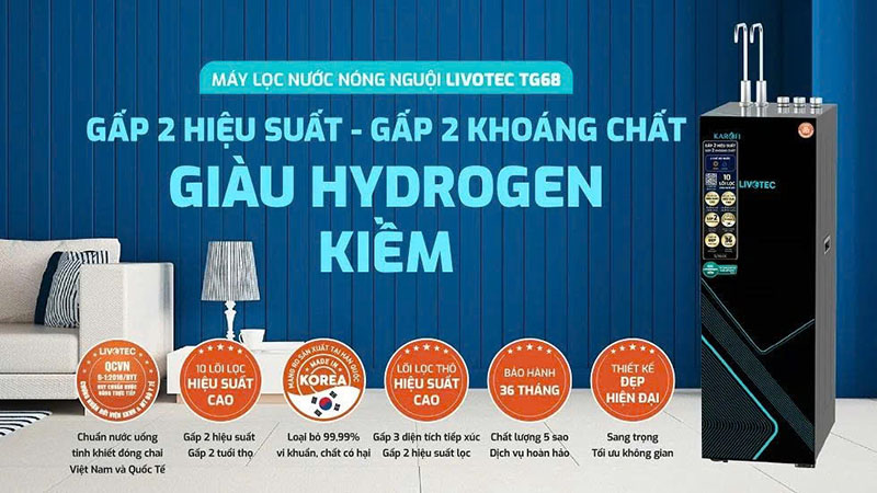 MÁY LỌC NƯỚC NÓNG NGUỘI LIVOTEC TG68 – GẤP 2 HIỆU SUẤT, GẤP 2 KHOÁNG CHẤT