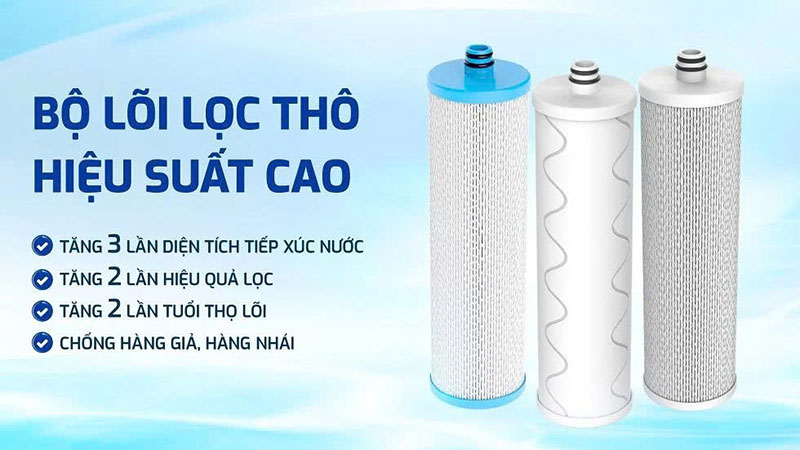 Hệ lõi lọc thô còn được tích hợp công nghệ chống giả, giúp bạn yên tâm sử dụng sản phẩm chính hãng và an toàn.