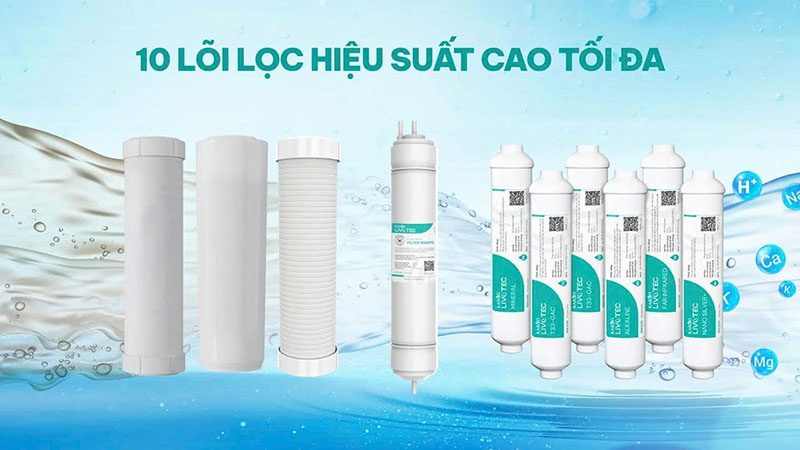 ♦ 10 lõi lọc công nghệ cao đảm bảo nước tinh khiết