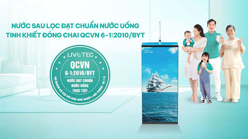 Nguồn nước sau lọc của Livotec 506 đã được kiểm định đạt chuẩn nước uống đóng chai theo quy định QCVN 6-1:2010/BYT do Bộ Y tế chứng nhận, hoàn toàn an toàn để sử dụng trực tiếp từ vòi.