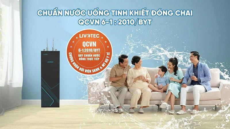 Nước từ máy lọc Livotec CL36 đã được kiểm nghiệm đạt chuẩn nước uống trực tiếp QCVN 6-1:2010/BYT – tiêu chuẩn nước đóng chai tại Việt Nam, được Bộ Y tế công nhận.