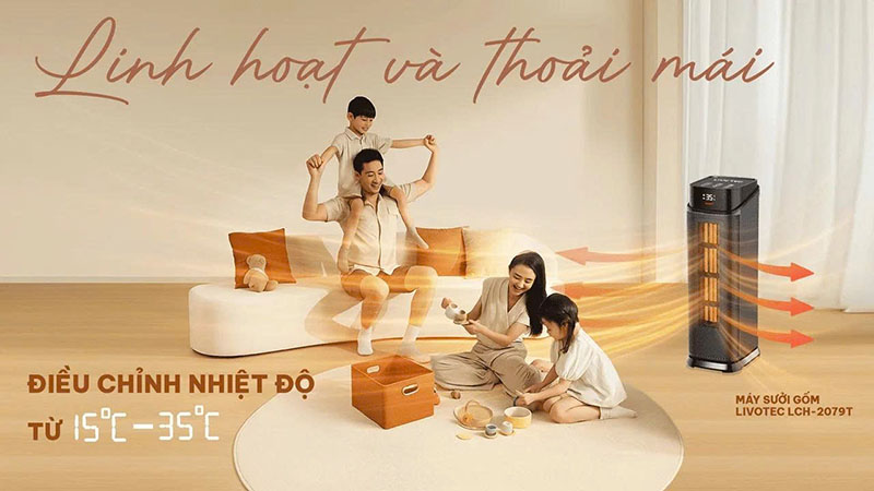 Mùa đông đến mang theo những cơn gió lạnh khiến không gian sống trở nên giá buốt và khô hanh. Một chiếc máy sưởi không chỉ cần làm ấm nhanh mà còn phải an toàn, êm ái và bảo vệ sức khỏe cả gia đình. Máy sưởi gốm Livotec LCH-2079T ra đời để đáp ứng trọn vẹn những yêu cầu đó: ấm nhanh chỉ sau 5 giây, lan tỏa nhiệt đều khắp phòng và tích hợp hệ thống an toàn đa tầng giúp bạn yên tâm sử dụng mỗi ngày.