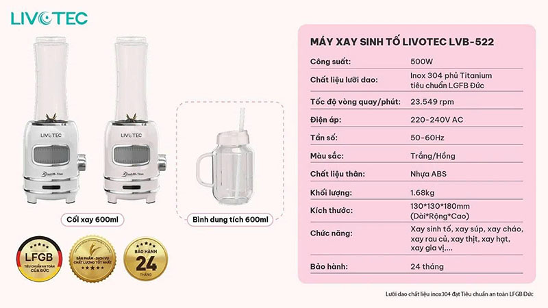 Máy Xay Sinh Tố Livotec LVB-522 – Nguyên Chất Sánh Mịn, Sống Khỏe Mỗi Ngày