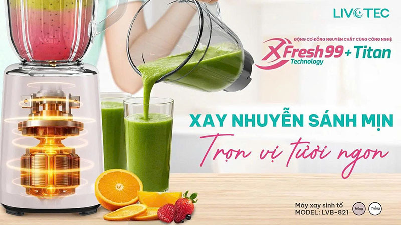 Máy xay sinh tố Livotec LVB-821 ứng dụng công nghệ XFresh99+Titan tiên tiến, là sự kết hợp hoàn hảo giữa:
