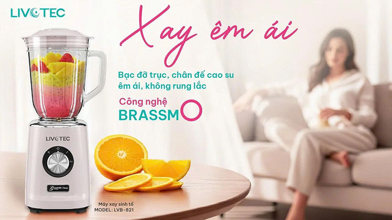 Máy xay sinh tố Livotec LVB-821 ứng dụng công nghệ BrassMo, với: