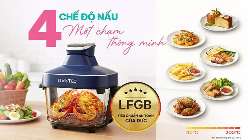 Nồi chiên không dầu Livotec LAF-860 tích hợp 4 chế độ nấu cài đặt sẵn:
