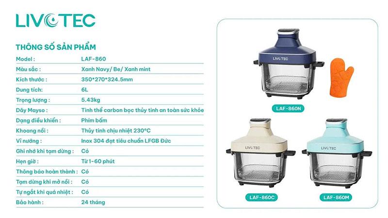 Nồi Chiên Không Dầu Livotec 4D Vision Glass Technology LAF-860