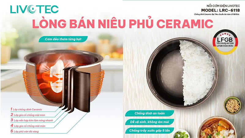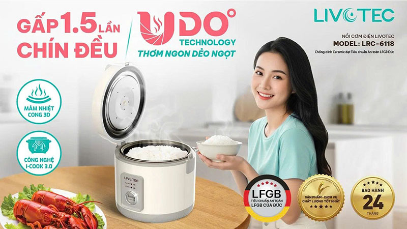 Nồi Cơm Điện Livotec LRC-6118 – Cơm Chín Đều Gấp 1,5 Lần, Thơm Ngon Dẻo Suốt 12 Giờ