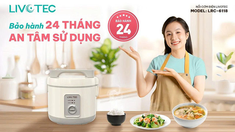 Nồi cơm điện Livotec LRC-6118 được bảo hành chính hãng 24 tháng, mang đến sự yên tâm tuyệt đối trong suốt quá trình sử dụng lâu dài, đồng hành cùng gia đình bạn trong từng bữa cơm ngon.