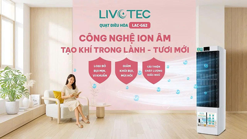 QUẠT ĐIỀU HÒA Livotec LAC-G62 – LÀM MÁT THÔNG MINH, KHÍ SẠCH AN TOÀN
