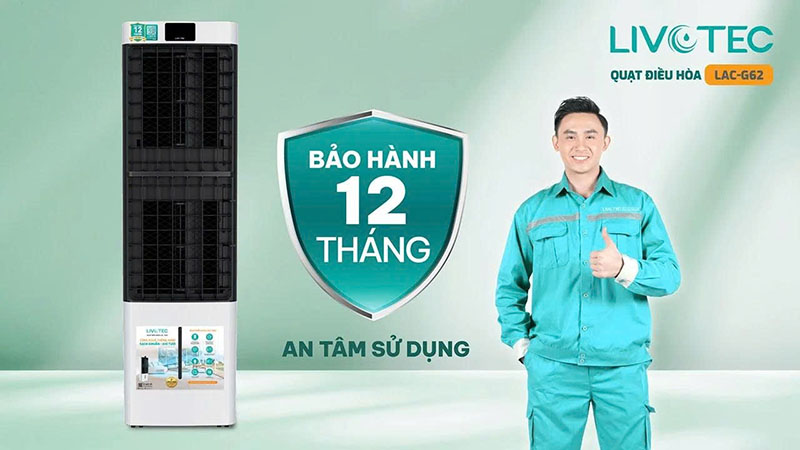 Quạt điều hòa Livotec LAC-G62 được bảo hành chính hãng 12 tháng. Khách hàng hoàn toàn yên tâm khi sử dụng sản phẩm với sự hỗ trợ chuyên nghiệp, nhanh chóng từ đội ngũ kỹ thuật viên của Livotec.