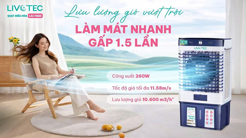Vào những ngày nắng nóng cao điểm, việc tìm kiếm một giải pháp làm mát mạnh mẽ, tiết kiệm điện và phù hợp với không gian mở là điều nhiều gia đình, quán cà phê hay nhà xưởng quan tâm. Quạt điều hòa Livotec LAC-H66S chính là lựa chọn lý tưởng với lưu lượng gió lên đến 10.600m³/h, làm mát nhanh gấp 1.5 lần so với quạt điều hòa thông thường cùng công suất.